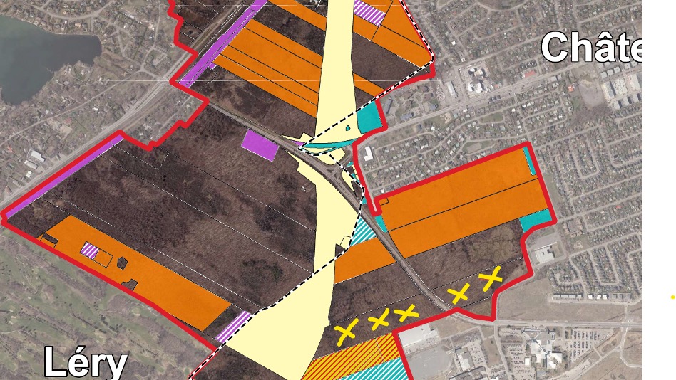 Lors de la séance du 24 novembre, le conseil de ville de Châteauguay a adopté une série de résolutions permettant l’achat de deux lots situés dans le Corridor vert. Ces lots totalisant un peu plus de 10 hectares (1 148 993 pieds2) sont situés boulevard René-Lévesque adjacents du Sportplex (identifiés par des X jaunes sur la carte ci-dessous.